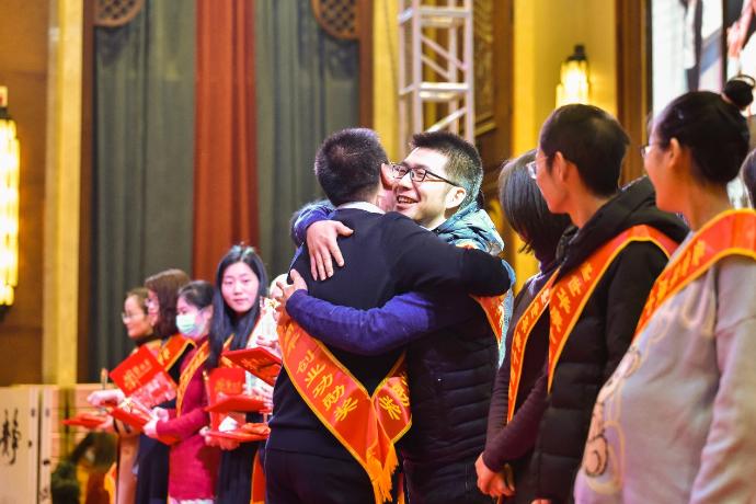 这是我们各个分公司的集体照,这么多年我们没有拍过集体照。眼看着我们公司的员工越来越多,我感到非常欣慰。我有时候觉得看着别的公司的员工总是不“舒服”,还是看自己的员工“舒服”。大概是因为自己公司的员工有特殊的磁场,吸引着我吧,让我觉得男生都特别帅气,女生都特别有福气。 我们前面看到的照片,都是我们一路走来的美好回忆。能够走到今天,我很感恩。首先要感谢全体同事这么多年跟随我们的公司,任劳任怨、默默无闻地工作,没有大家就没有盛世华康的今天,我们全体给自己鼓个掌。再一个要感谢我们各个分公司的总经理、各个部门的经理和刚才上台领奖的各位功勋们,没有他们不离不弃地跟随公司创业,也没有我们的今天。我们再一次把掌声送给他们。我们公司人虽然很多,但是分到各个子公司,其实人也不多,每个公司做的东西又有差异,所以其实每个事业部的诞生、成长和发展都是我们最初的事业部的核心团队成员不断去迎接挑战、解决创业过程中一个一个的困难才成就的。我觉得各个事业部的负责人真的很不容易,我一个个来感谢一下。 我们胡总,我上次年会就说了她就像一个母鸡带着一群小鸡一步步成长,一直任劳任怨。我们掌声感谢一下胡总。第二个要感谢巴菲尔的吴总。技术服务本身是很不容易